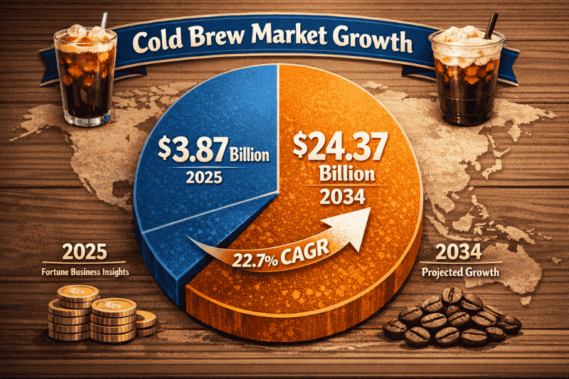 According to Fortune Business Insights (2025), the global cold brew market is set to explode from $3.87 billion in 2025 to $24.37 billion by 2034, maintaining a massive 22.7% CAGR.